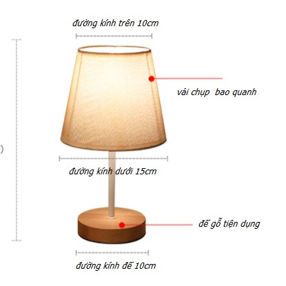 Đèn ngủ trang trí để bàn CÓ ĐIỀU CHỈNH ĐỘ SÁNG chân gỗ phong cách Hàn QuốcTHÔNG SỐ ĐÈN TRANG TRÍ: