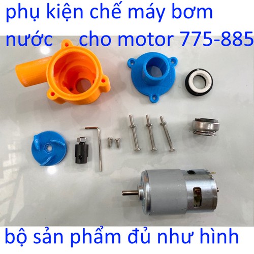Bộ phụ kiện chế máy bơm nước. bộ sản phẩm đầy đủ như hình ( MOTOR 775 + bộ kít in 3D, trục nối M6 lỗ 5mm, các loại sim rong, phớt, ốc vít...)Shop linh kiện diy chính thức phát triển thành công mẫu phụ kiện, máy bơm nước tự chế với motor 775 với công suất đẩy cao 5m đến 6m. lưu lượng nước có thể đến 70 lít/1 phút