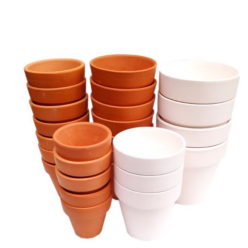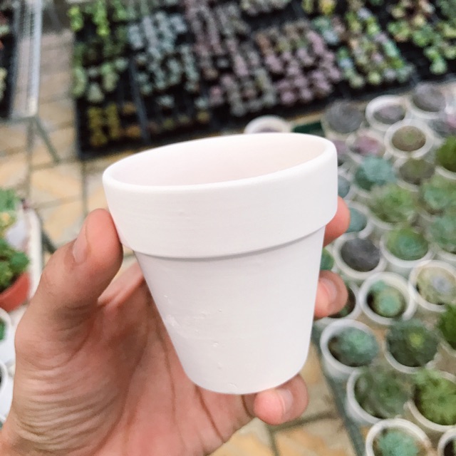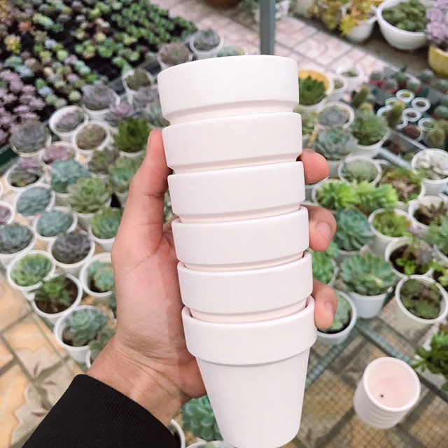 > Chậu đất nung trồng sen đá và xương rồng của shop có 2 loại trắng và đỏ.> Màu trắng size sẽ nhỉnh hơn 1 chút so với màu đỏ vì đất làm chậu đỏ ( khoảng 6.5cm) đắt hơn và co ngót khi gia công nhiệt nhưng màu đỏ sẽ bền màu hơn và khó bị bẩn.