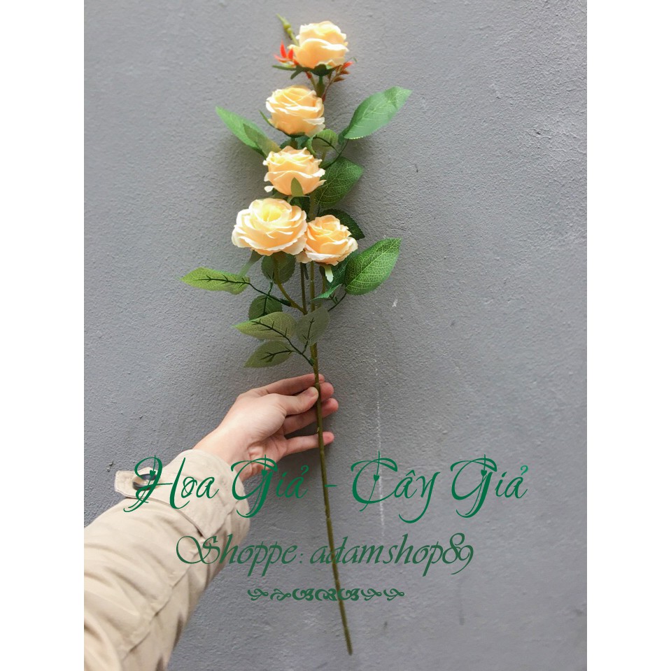 Hoa giả - Hoa Hồng Quý Tộc 1 cành 5 bông lớn