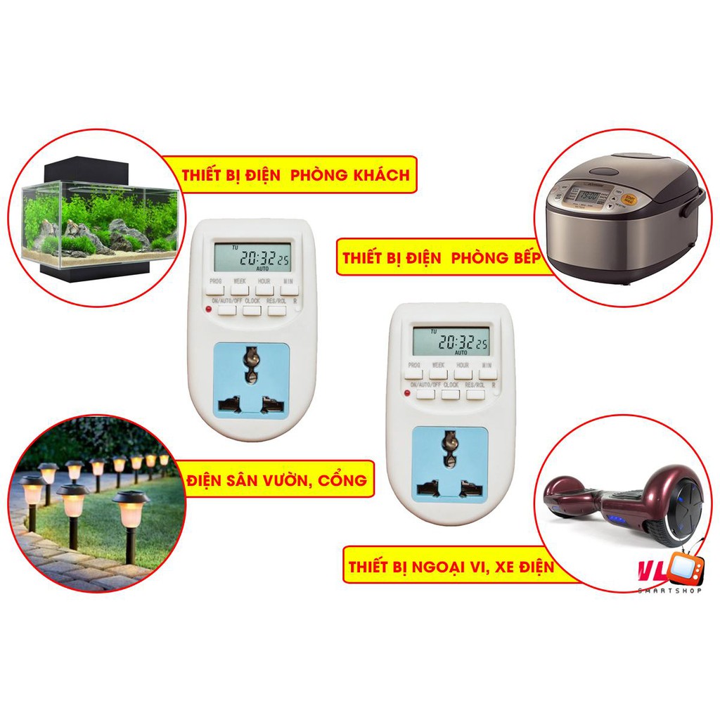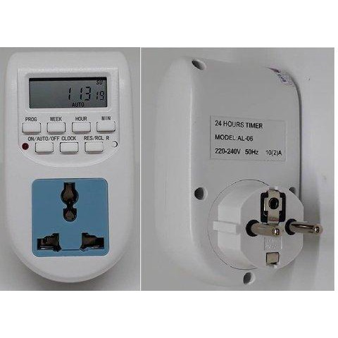 Ổ cắm hẹn giờ Al06 bật tắt thiết bị điện tự động công suất 10AỨng dụng :Sử dụng ổ cắm này bạn vừa tiết kiệm điện, vừa không phải bận tâm đến việc bật tắt các thiết bị vì đôi lúc bạn có thể sẽ quên, chỉ việc hẹn giờ và việc bật tắt thiết bị sẽ lặp đi lặp lại theo chu trình mỗi ngày: