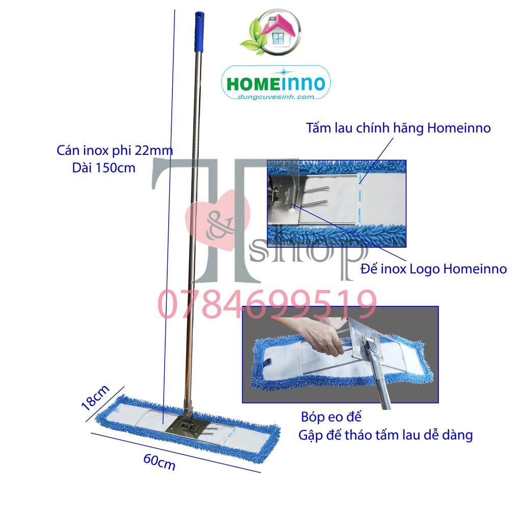 Nhà cửa & Đời sống > Dụng cụ chăm sóc nhà cửa > Cây lau nhà || Cây Lau Nhà Inox Bẹ Tấm San Hô Bẻ 60cm Homeinno CÁN THẲNG Dài 150cm (Có Sẵn Tấm Lau)Còn hàng