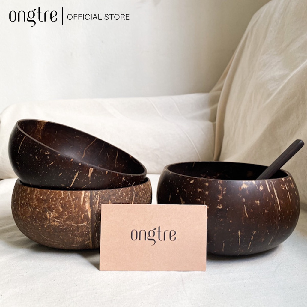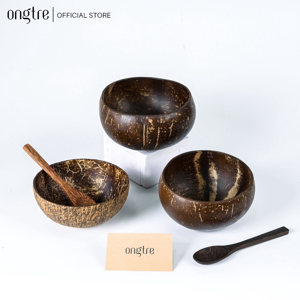 Bát Chén gáo Dừa ONGTRE cao cấp dùng ăn Salad, hoa quả dầm