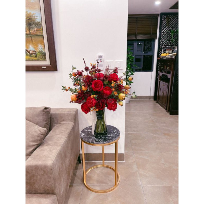 Chất liệu: khung sắt sơn tĩnh điện , mặt đá nhân tạo cao cấp