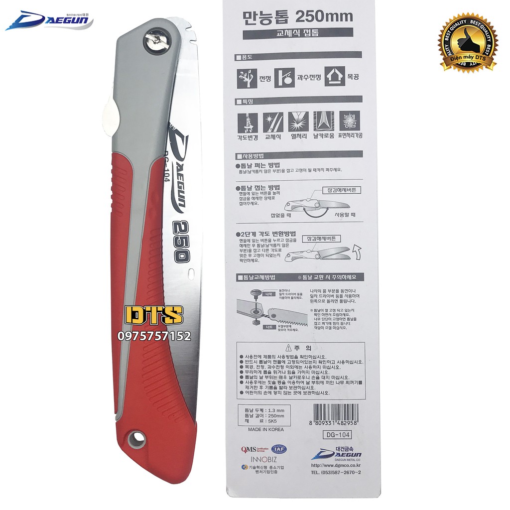 Nhà cửa & Đời sống > Dụng cụ & Thiết bị tiện ích > Dụng cụ > Cưa, máy cắt & máy mài || Cưa gỗ cầm tay DAEGUN, cưa cành cán xếp 250mm, cưa gấp gọn thép cao cấp Made in KoreaCòn hàng