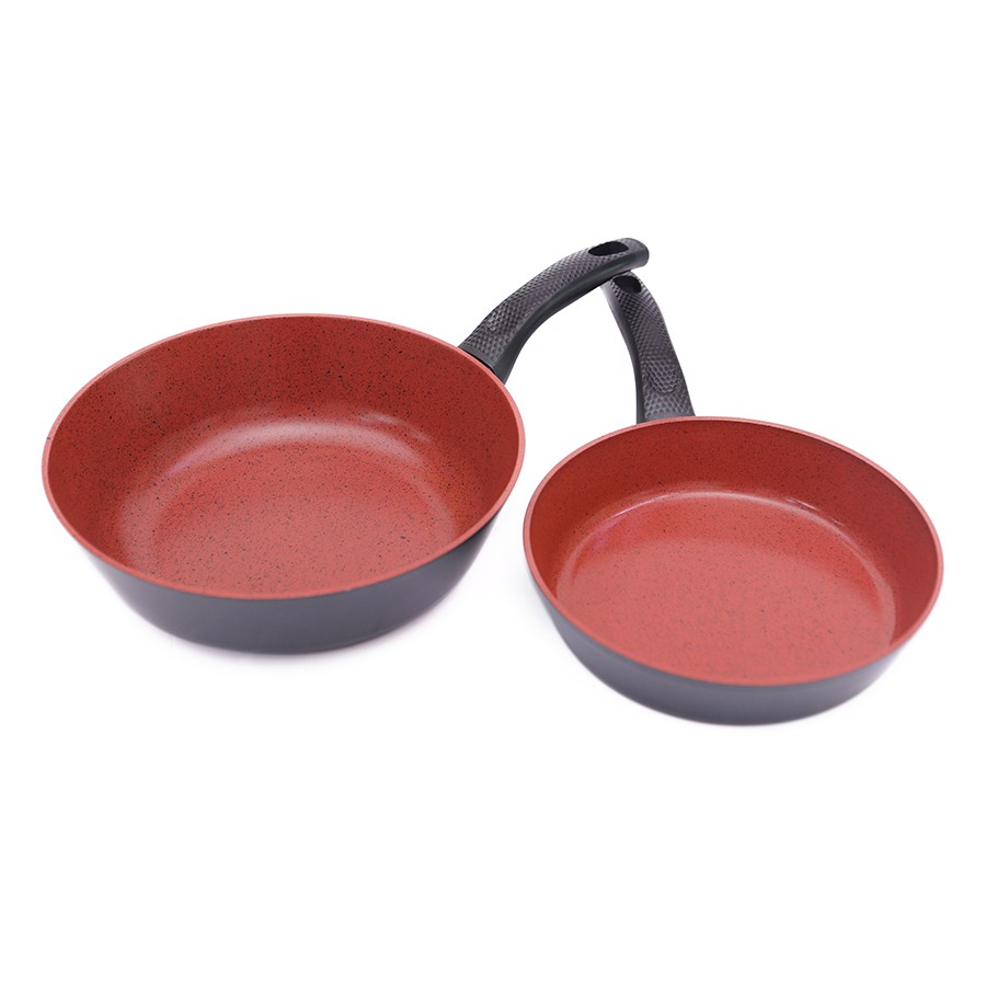 Bộ 2 chảo chiên 24cm| Xào 28cm:Chảo chiên 24cm: Dày đáy 4mm | Kích thước: 24 x 38.5 x 5.3cm, sâu thành 5.3cm