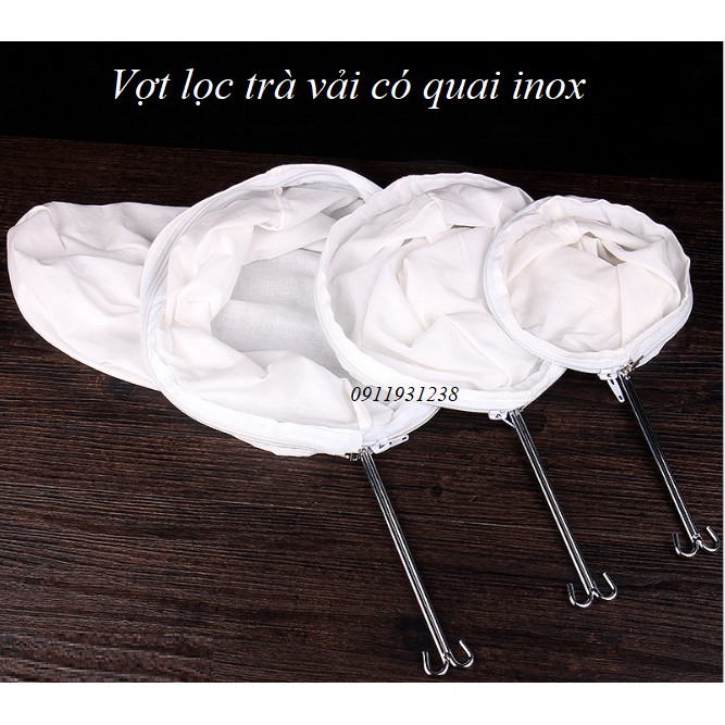 Nhà cửa & Đời sống > Dụng cụ nhà bếp > Dụng cụ pha trà, cà phê || Vợt lọc trà vải , quai inox ( 3 kích thước )Còn hàng