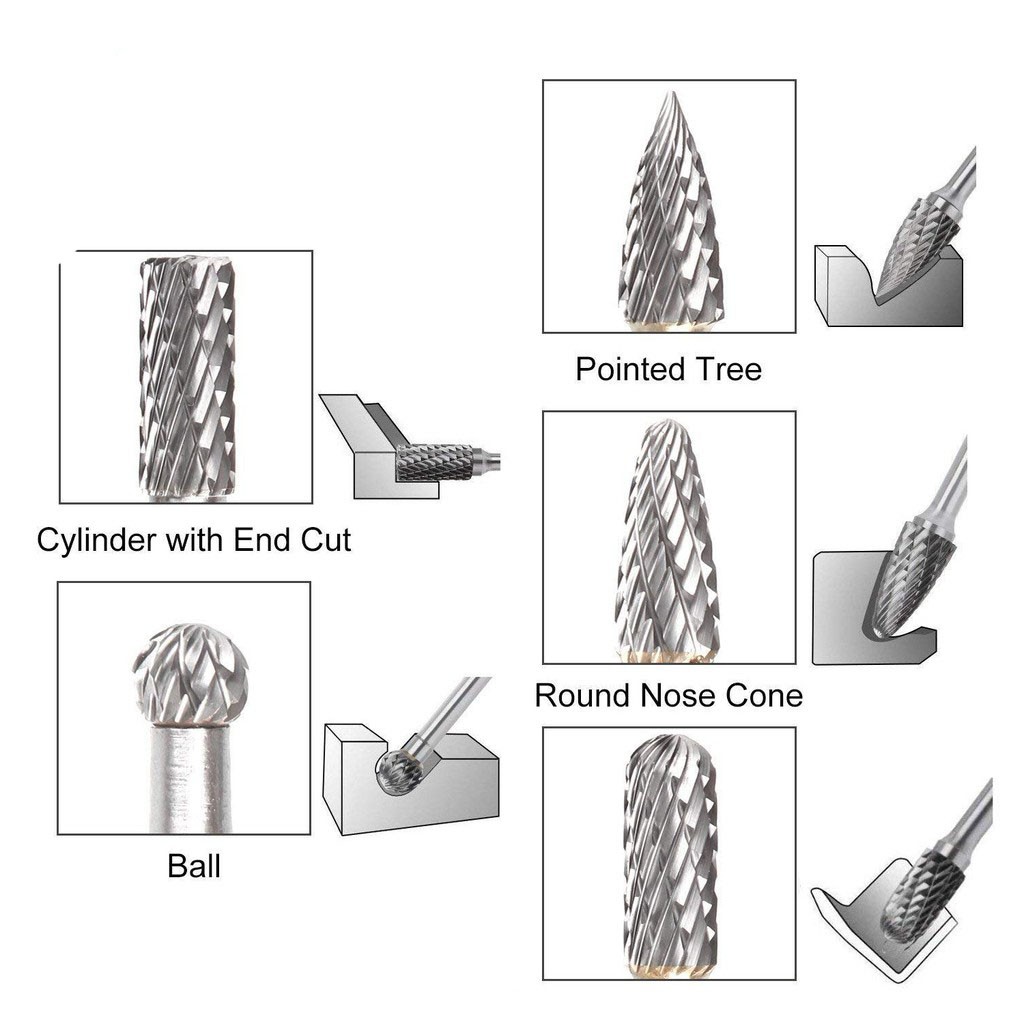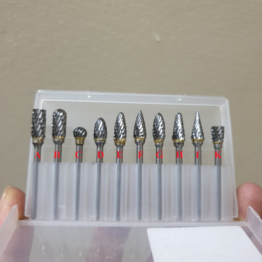 Các đầu được chế tạo từ Tungsten, cứng và rất sắc. kích thước trục 3mm, thích hợp dùng cho các loại máy khoan cầm tay mini, dremel và các loại máy khác có tốc độ vòng quay từ 6.000 - 50.000 vòng.