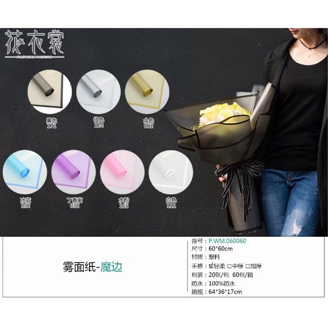 Tập giấy mika trơn gói hoa gồm 20 tờ khổ 60*60Không thấm nước