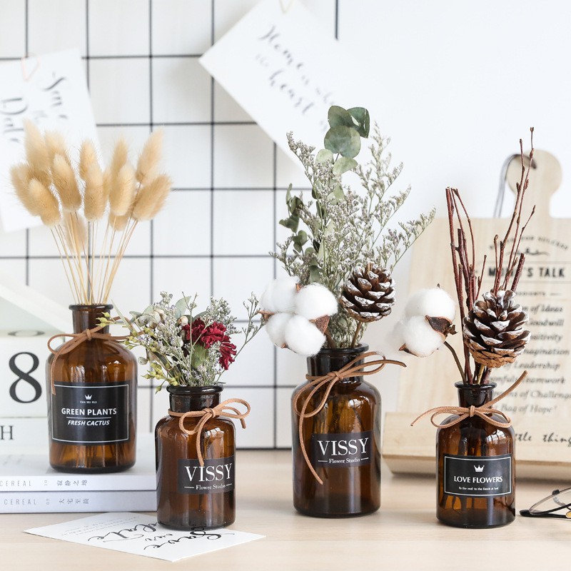 Lọ hoa thủy tinh phong cách Bắc Âu, bình bông đẹp trang trí hoa khô, hoa giả decor
