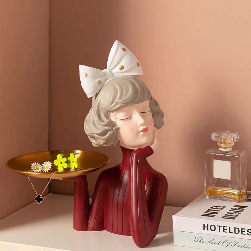 Nhà cửa & Đời sống > Trang trí nhà cửa > Bình trang trí || [Sẵn] Tượng cô gái kèm khay đựng đồ decor độc đáo trang trí nội thấtCòn hàng