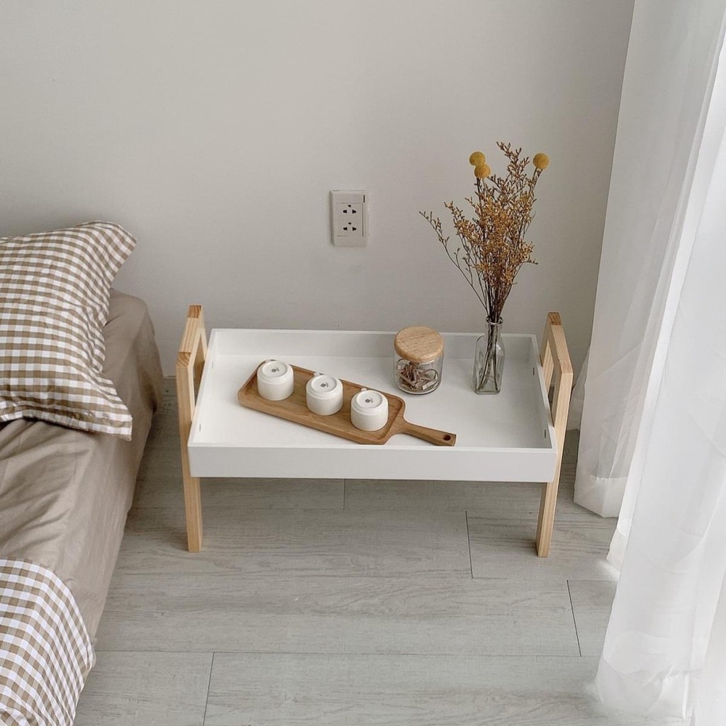 Kệ Gỗ Trang Trí Hàn Quốc - kệ Khay Để Đầu Giường Đa Năng Màu Trắng