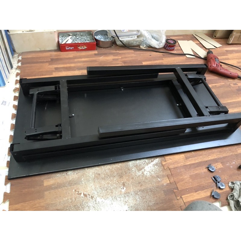 chân bàn sơn tĩnh đen tĩnh điện, gấp kiểu lò xo nhẹ nhàng mở ra và gấp lại
