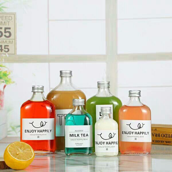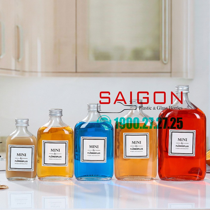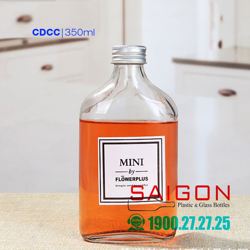 Chai Thủy Tinh Dẹp Cổ Cao Nắp Nhôm