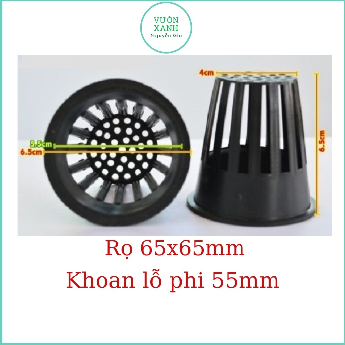 Rọ nhựa trồng rau được sử dụng để trồng rau theo phương pháp thủy canh tĩnh và hồi lưu. Đây là vật dụng dùng để đựng giá thể (sơ dừa), hạt giống sẽ được gieo vào rọ đựng giá thể, rọ nhựa được đặt vào ống chuyên dụng trồng thủy canh, đáy rọ được tiếp xúc với nước pha với dinh dưỡng thủy canh.RỌ 65x65mm DÙNG CHO ỐNG KHOAN LỖ PHI 55 - 57mm