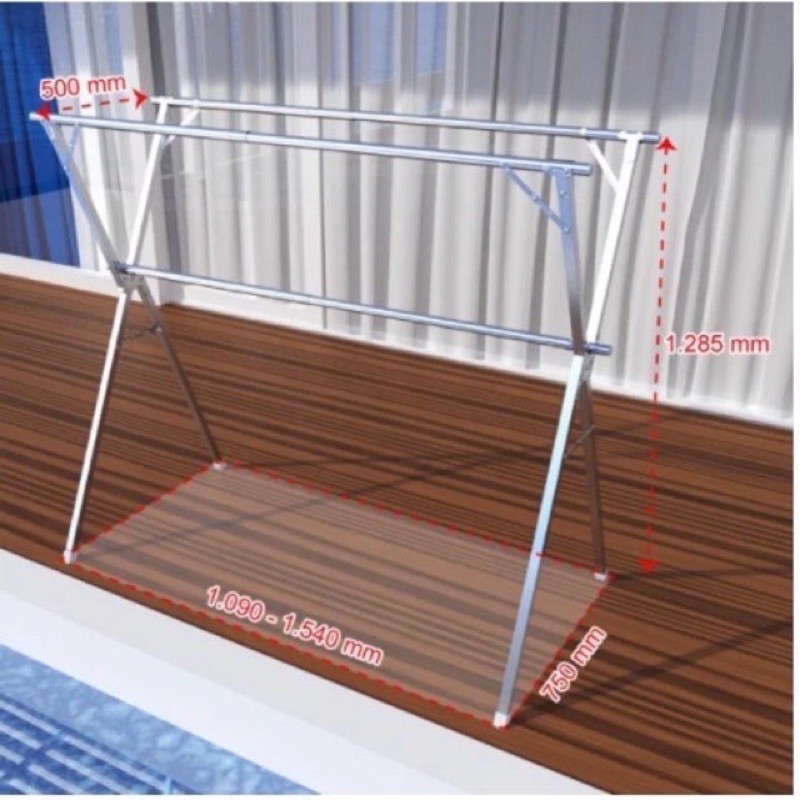 * Sào co dãn: 1.090mm – 1.540mm. Tùy thuộc vào số lượng quần áo nhiều hay ít mà bạn có thể điều chỉnh chiều dài thanh sào theo ý muốn. Với kích thước tối đa là 1.540mm, bạn có thể phơi thẳng cả 1 chiếc chăn hoặc màn trên sào.