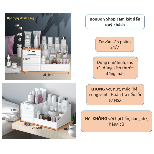 - Do hiệu ứng ánh sáng nên màu sắc của hộp đựng đồ trang điểm có thể có chút thay đổi, mong các bạn thông cảm