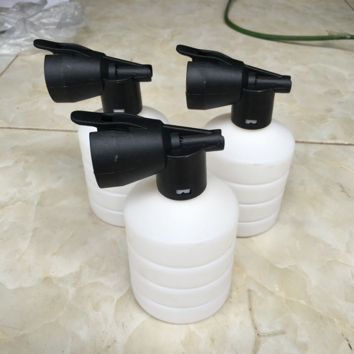 GIỚI THIỆU VỀ BÌNH XỊT BỌT TUYẾTViệc rửa xe, tẩy rửa sàn nhà, cửa kính, bể bơi…thường mất nhiều thời gian cho bạn nếu phải sử dụng phương pháp truyền thống kéo các cuộn ống dài và các vật dụng lỉnh kỉnh khác. Chính vì thế, mọi gia đình hiện nay ai cũng sở hữu cho mình chiếc máy phun xịt rửa cao áp. Tuy nhiên, bạn cần trang bị thêm thiết bị trợ giúp khác đó chính là Bình xà bông tạo bọt tuyết máy xịt cao áp - 0.3L mang đến vẻ sạch đẹp, sáng bóng, diệt vi khuẩn cho các đồ dùng, nhà cửa, thiết bị của bạn. Đặc biệt nếu bình xà bông trong nhà bạn bị hư hoặc đánh mất thì với mức phí khá hấp dẫn này bạn có thể dễ dàng thay thế cho chiếc máy phun của mình được hiệu quả hơn.