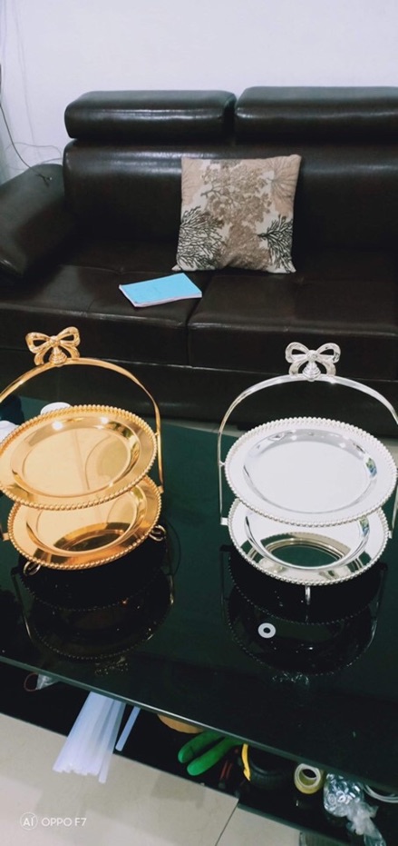 🌸Shop Huy Decor mới về mẫu khay bánh trang trí🌸khay bánh kim loại được mạ crom sáng bóng sang chảnh , trên chóp khay bánh trang trí chiếc nơ xinh xắn ,
