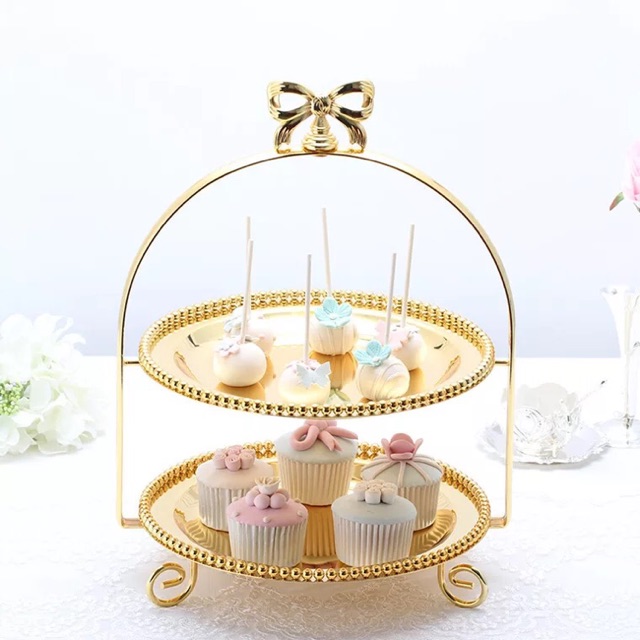 Khay bánh 2 tầng nơ trang trí Huydecor