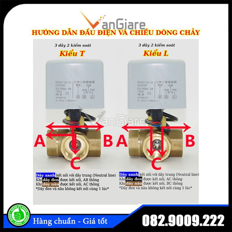 Giới thiệu [Van bi điện 3 lỗ] Van khoá nước 3 ngã đóng mở bằng motor điện 220v phi 21 27 34