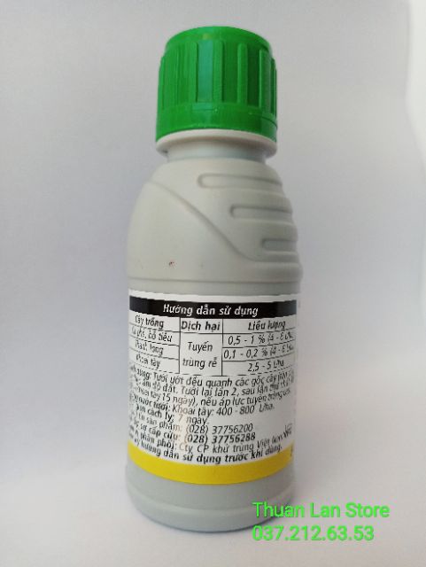 Thanh Long Tuyến trùng rễ 0,1-0,2% Pha 2-4chai /200 lít nước, tưới dung dịch đều quanh gốc cây vào đầu mùa mưa, khi điều kiện thời tiết thuận lợi cho tuyến trùng phát triển