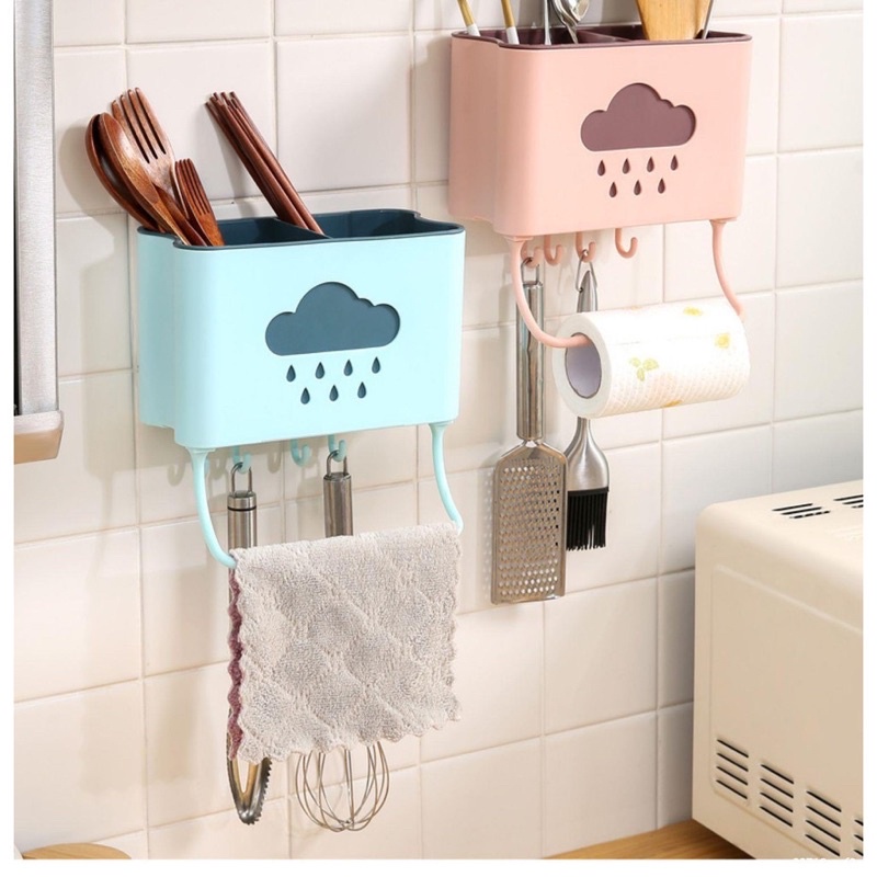 Nhà cửa & Đời sống > Sắp xếp nhà cửa > Móc treo || Ống đựng đũa thìa treo tường hình đám mây kèm móc treo khăn dụng cụ bếpCòn hàng