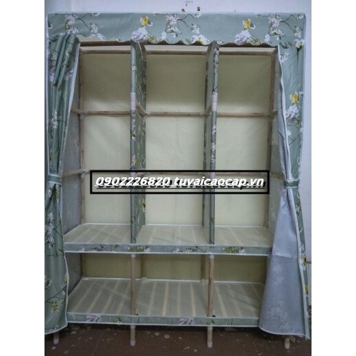 Tủ vải khung gỗ 3 buồng bọc nhựa - chốt nhựa vải cotton