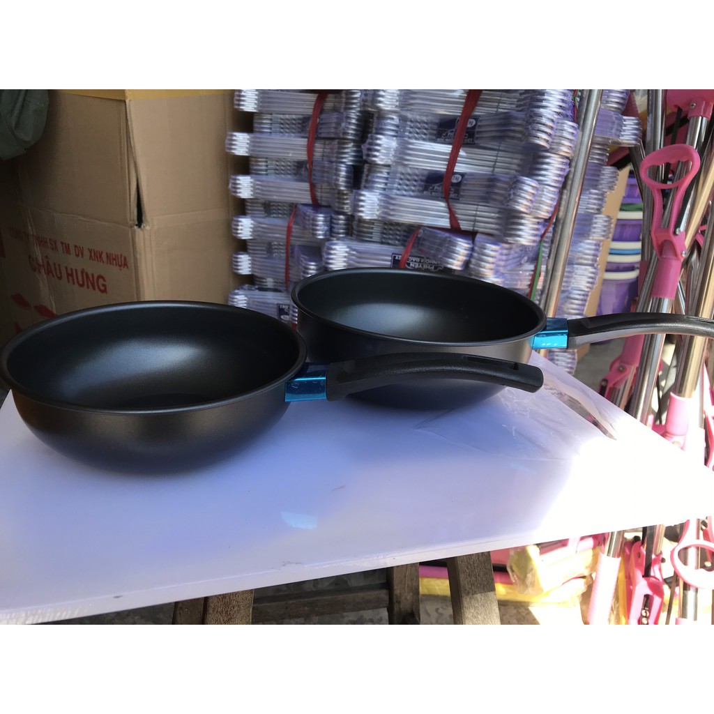 - Chảo chống dính lòng sâu dược làm từ hợp kim nhôm giúp dẫn nhiệt cự tốt, sử dụng được trên cả bếp ga và bếp từ.
