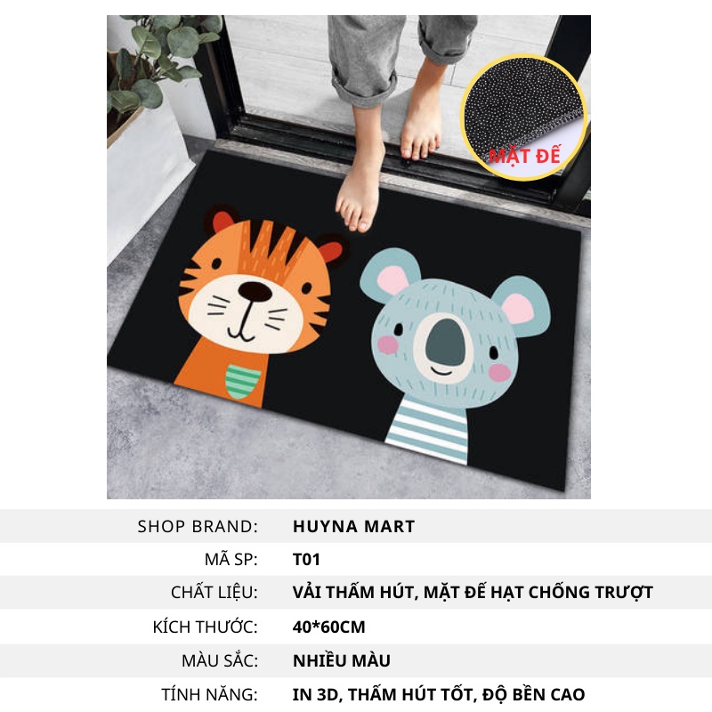 Thảm Lau Chân 3D Thấm Nước Chống Trơn Trượt HUYNA MART 40x60cm HUYNA MART(Chọn mẫu)Thông tin sản phẩm: