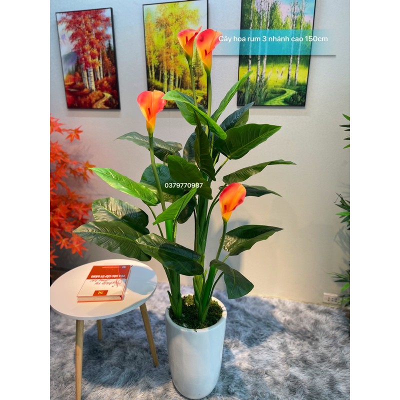 Cây hoa rum cao 150cm, 1 cụm gồm 3 nhánhGồm 4 bông hoa đường kính 15cm,chất liệu hoa 100 % mềm mịn nên sờ vào như thật.