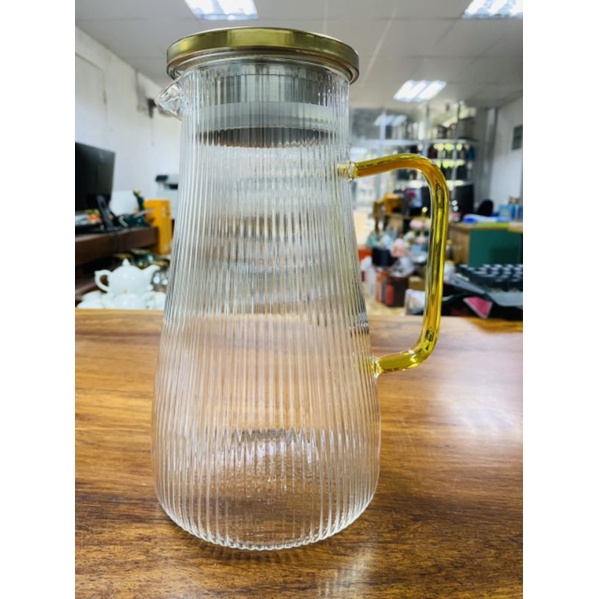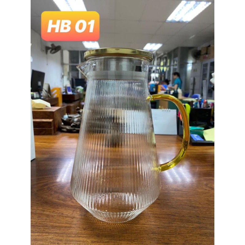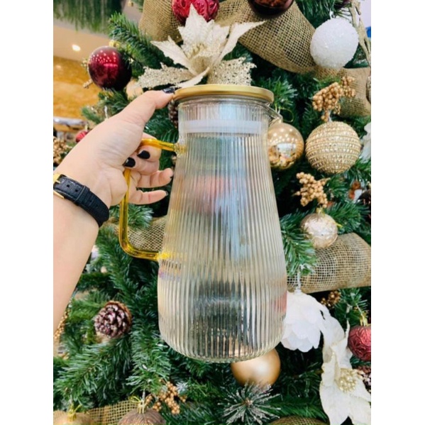 Nhà cửa & Đời sống > Bộ đồ bàn ăn > Bình nước & phụ kiện || Bình đựng nước thủy tinh chịu nhiệt quai vàng 1800mlCòn hàng