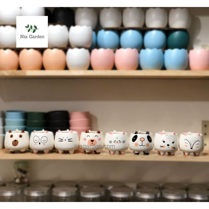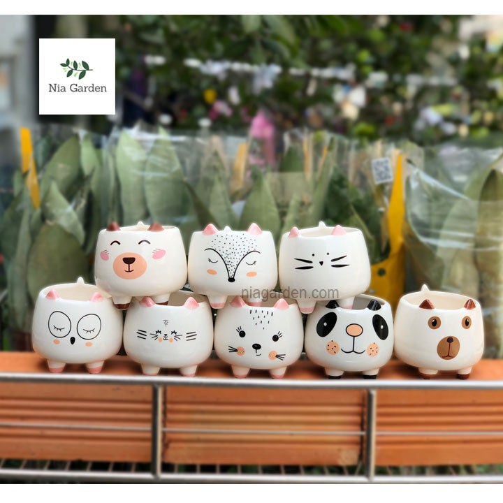Chậu thú bằng sứ trồng sen đá cây mini để bàn Nia Garden N4