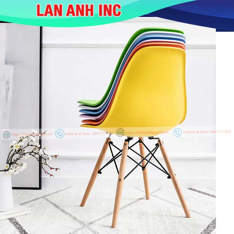 Giới thiệu Ghế văn phòng nhựa chân gỗ cao tựa lưng giá rẻ eames LA-GN128-1
