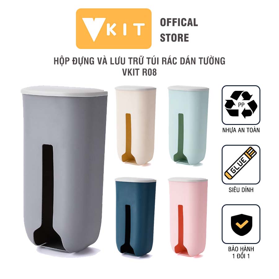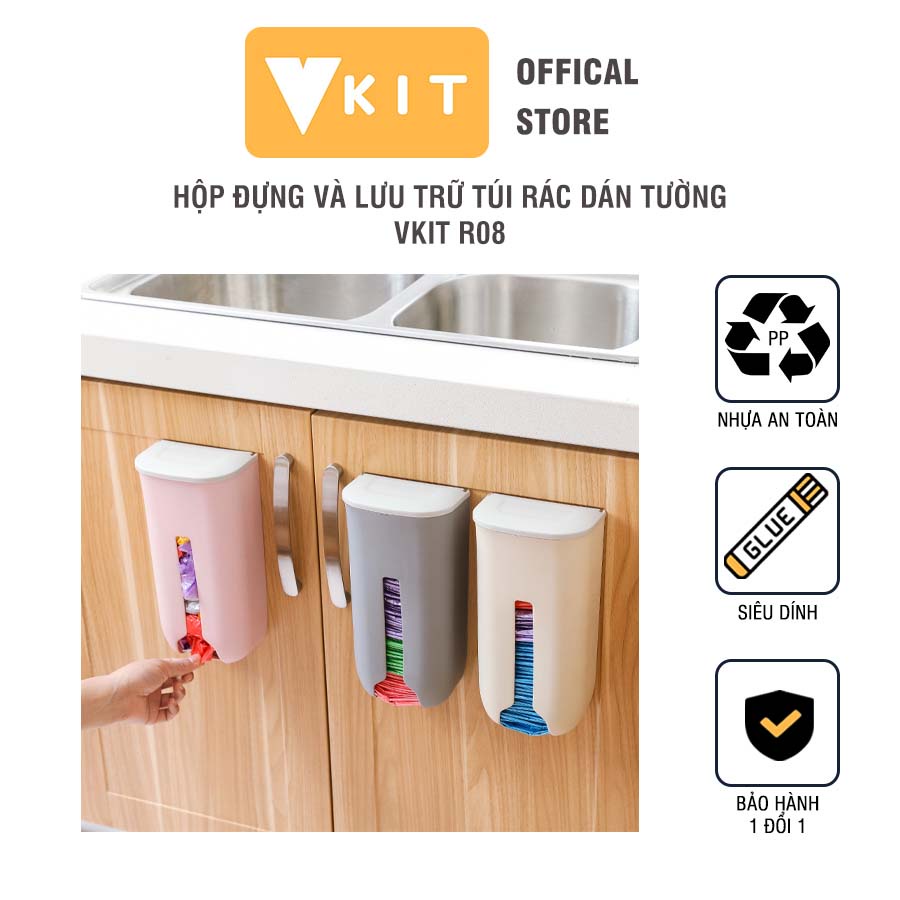 Tên sản phẩm: Hộp lưu trữ túi ni- lông, túi rác loại dán tường siêu chắc chắn Vkit R07Chất liệu : Nhựa PP