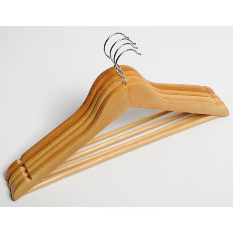 tính năng nổi bật: gỗ sắc nét có rãnh chống tuột khu móc quần, áo. sản phẩm có thanh ngang giúp tiện lợi khi treo kết hợp quần âu và áo