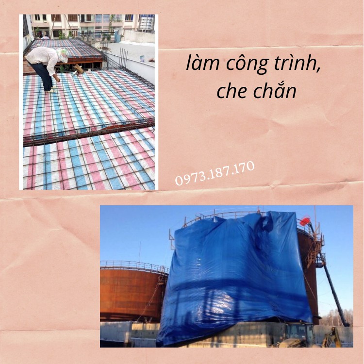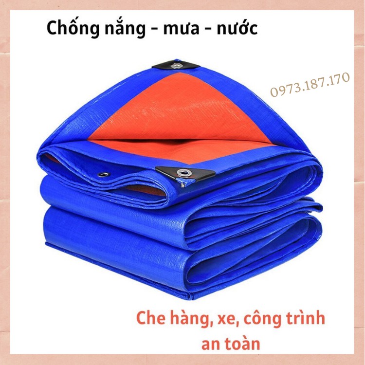 Bạt che mưa nắng cao cấp chịu được nắng mưa vài năm. Sử dụng trong các lĩnh vực:- Tấm bạt che đa dụng chống thấm nước, sử dụng che phủ ô tô, xe máy, hàng hóa, máy móc, phơi - bảo quản nông sản, che chắn xây dựng ...