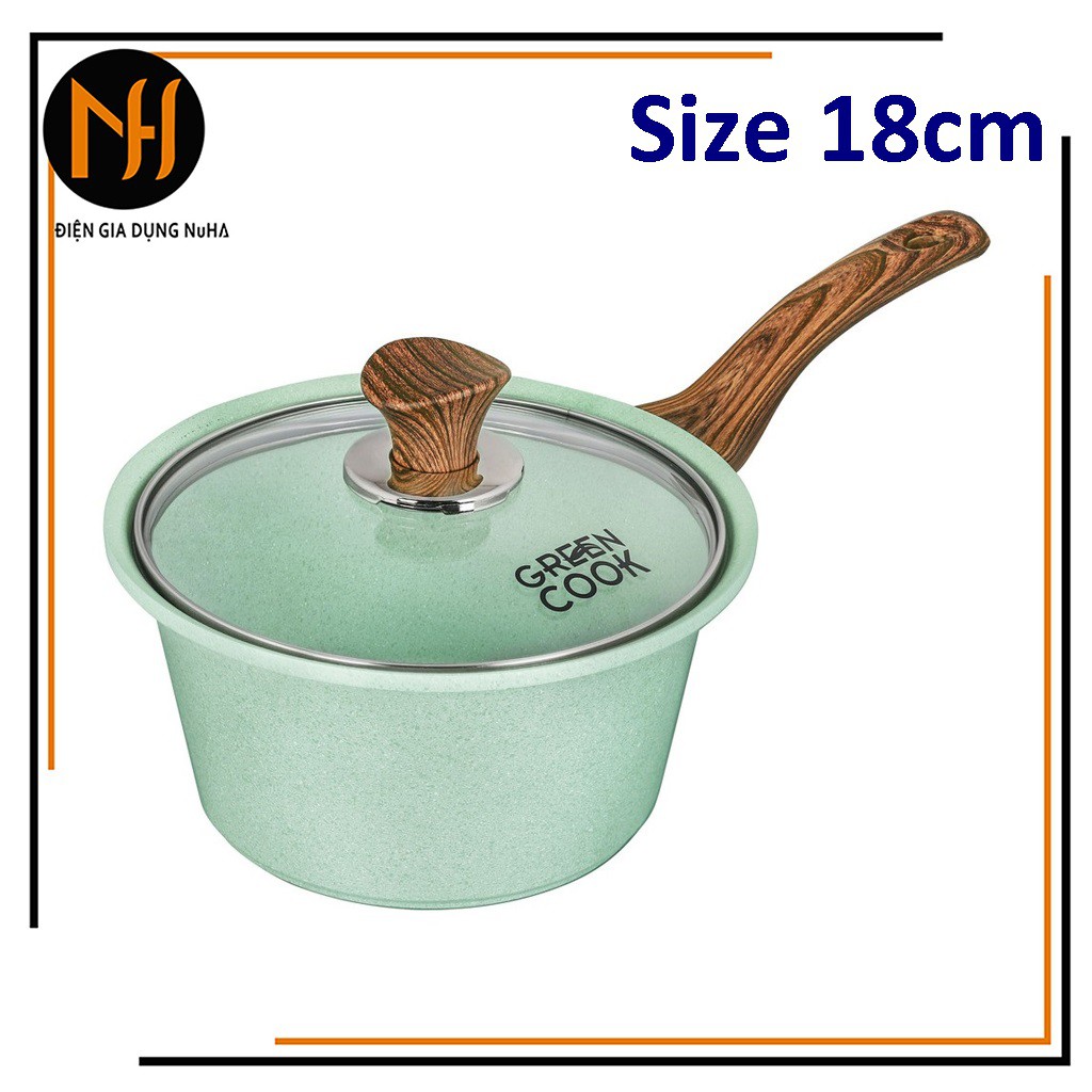 Giới thiệu Quánh đúc đáy từ ceramic màu xanh Greencook GCS05-18IH men chống dính vân đá
