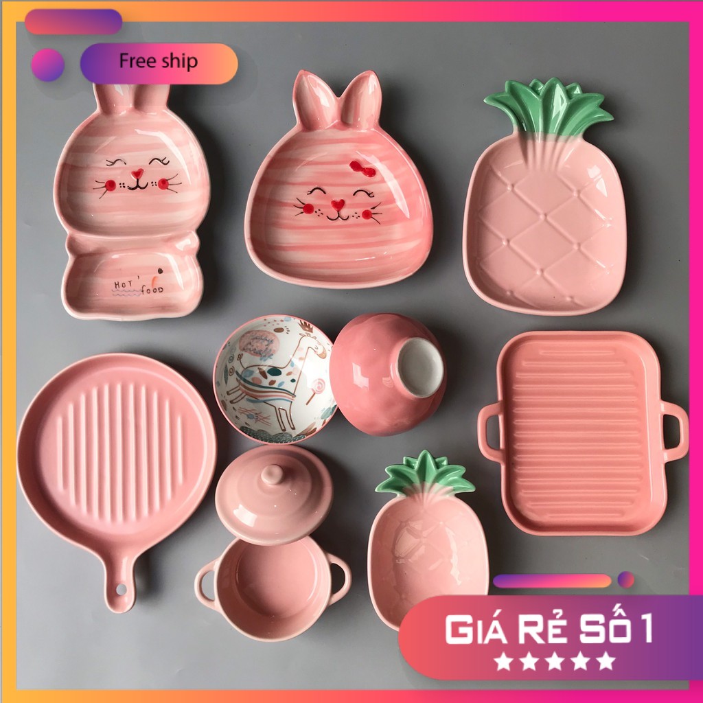 Nhà cửa & Đời sống > Bộ đồ bàn ăn > Dĩa || Bát Ăn Cơm Bộ Bát Đĩa Sứ Decor Chén Dĩa Mầu Hồng Dễ Thương Cute Cao Cấp S09Còn hàng