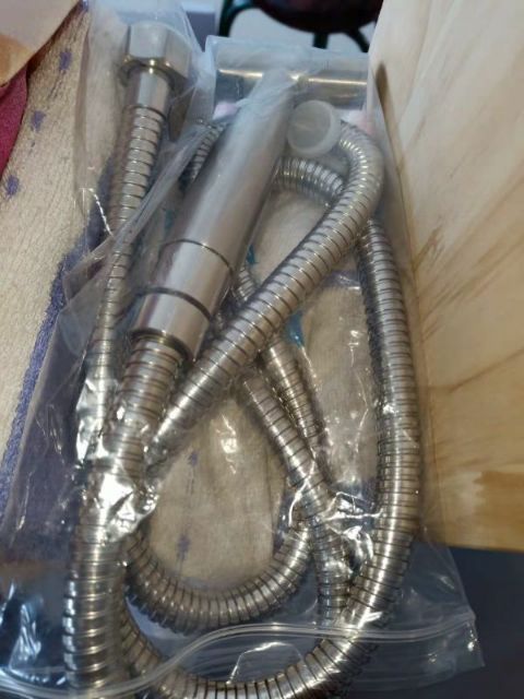 -Bộ sản phẩm gồm: 1 đầu vòi xịt, dây inox 304, cài xịt, ốc vít đã đầy đủ, khách chỉ lắp đặt