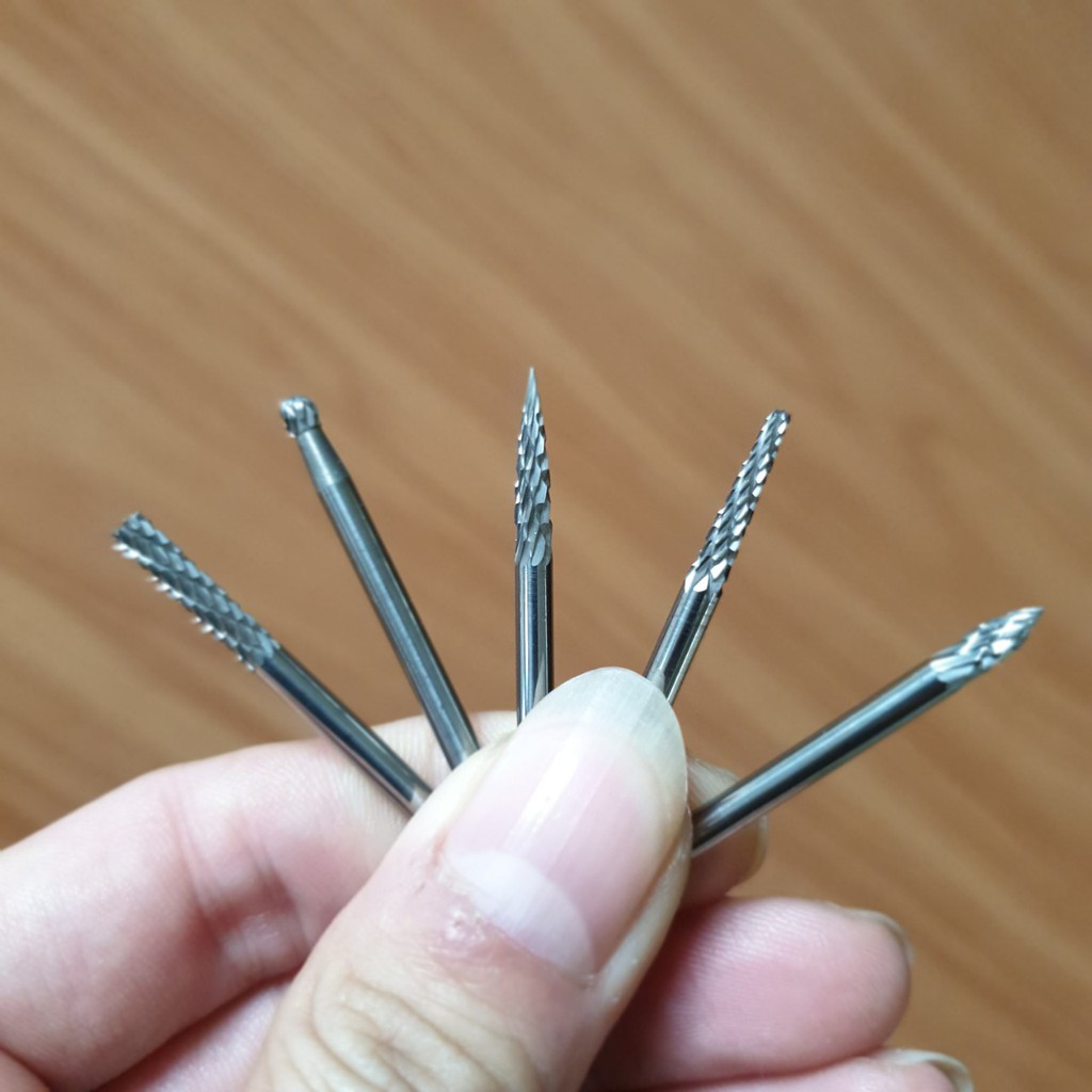 Giới thiệu Mũi hợp kim vonfram mài, khắc, phay chân 3mm (3x3mm)