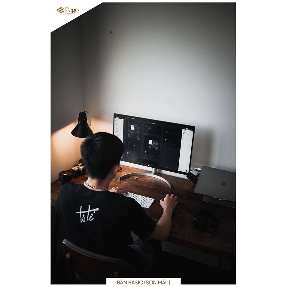 Giới thiệu Bàn làm việc bằng gỗ tự nhiên nâu sẫm rustic FEGO nội thất phòng khách