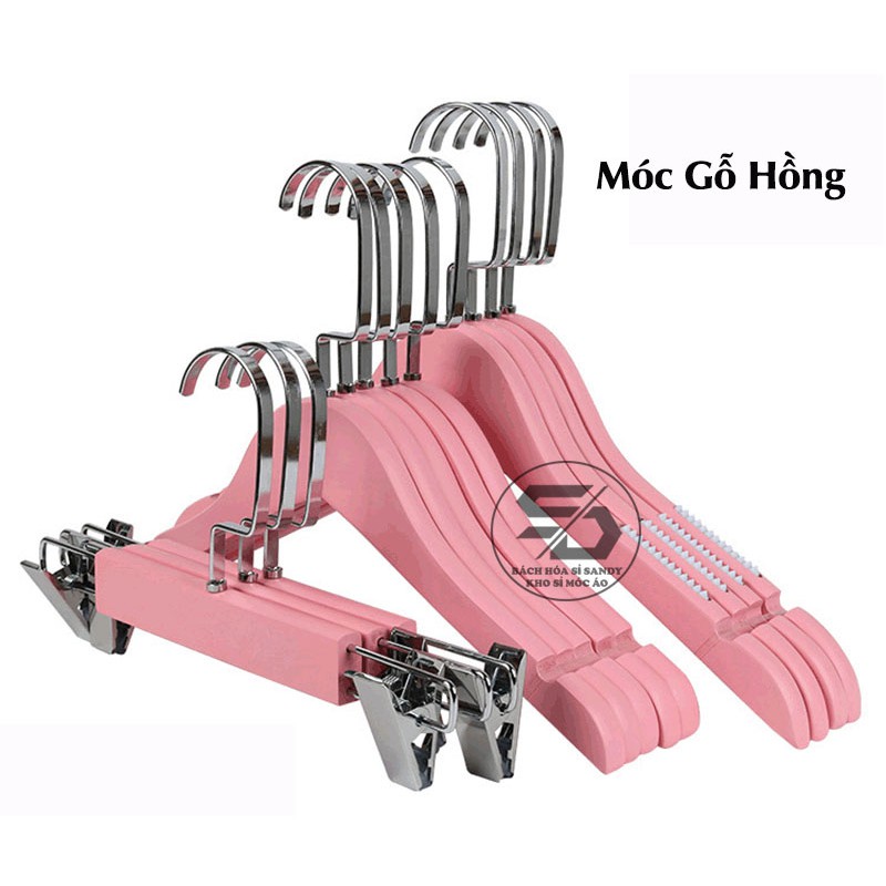 Móc Gỗ Treo Quần Áo KTN Hồng 44.5cm (1 móc)Móc gỗ hồng treo quần áo có vai đệm chống trượt, thân móc được sơn phú màu hồng 2 lớp bóng mịn. Đầu móc sáng bóng xi mạ hạn chế gỉ sét khi sử dụng thời gian dài. Móc gỗ hồng thích họp cho việc treo móc quần áo ở các shop thời trang phong cách trẻ trung, shop quần áo trẻ con,...