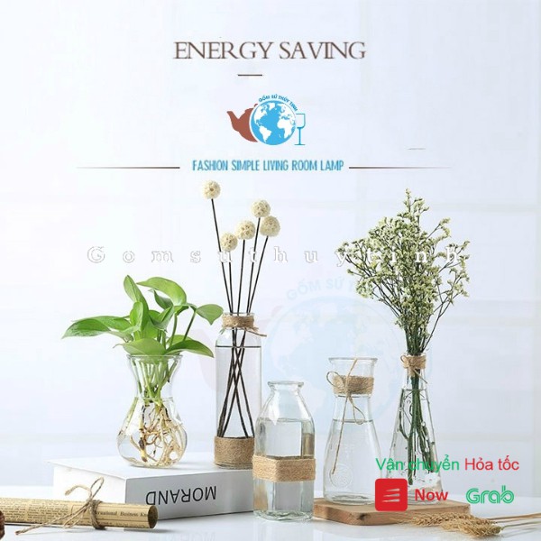 Set lọ hoa/ bình hoa thủy tinh mix 5 mẫu siêu xinh tặng kèm dây dừa trang trí (combo 5 lọ)