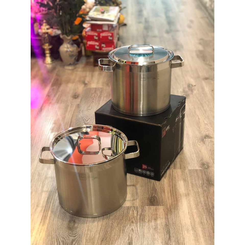 Nồi này làm bằng nguyên liệu inox 304, kiểu dáng hiện đại, chắc chắn làm hài lòng những người khó tính nhất ạ💋Nồi fivestar thân cao 🔅m 🔅 24 cao 20 cm
