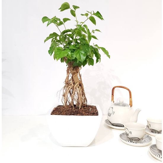 Cây Hạnh Phúc bonsai để bàn kèm chậu gốm.