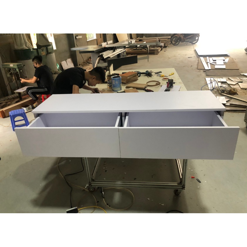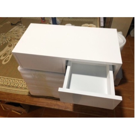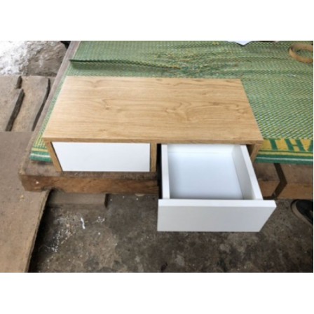 Kích thước : kệ dài 80cm sâu 30cm , hai ngăn kéo cao 15cm gỗ dày 1.7cm