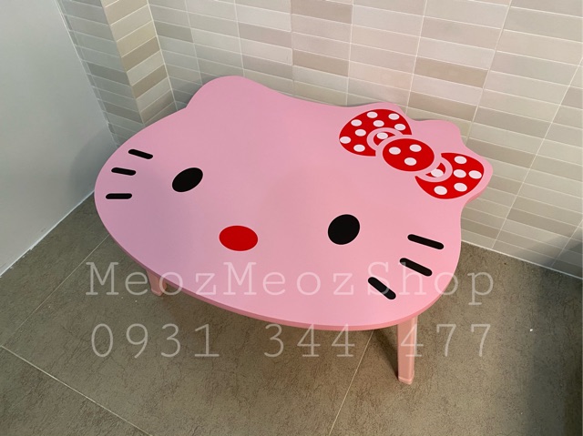 Bàn kitty hồng : cao 30cm rộng 56cm và ngang 60cm
