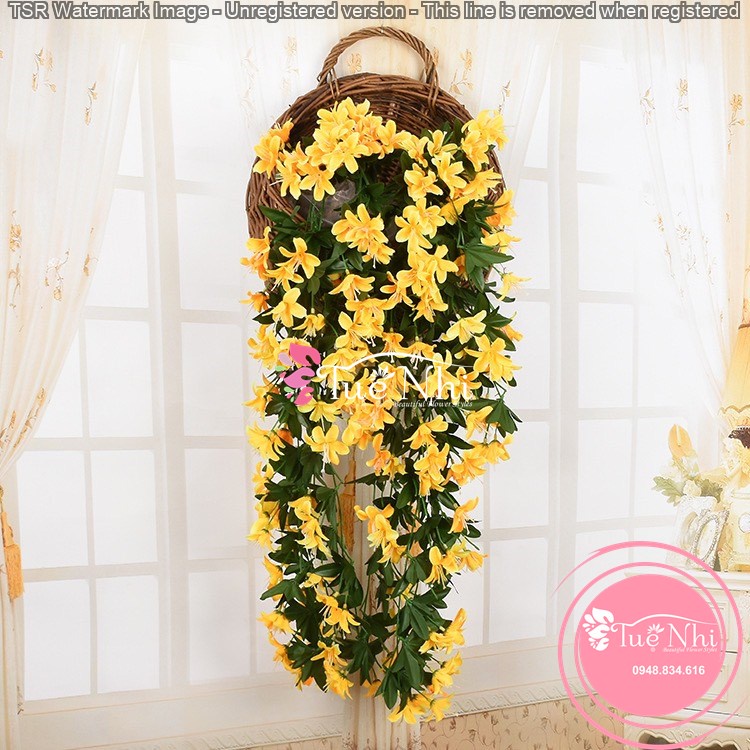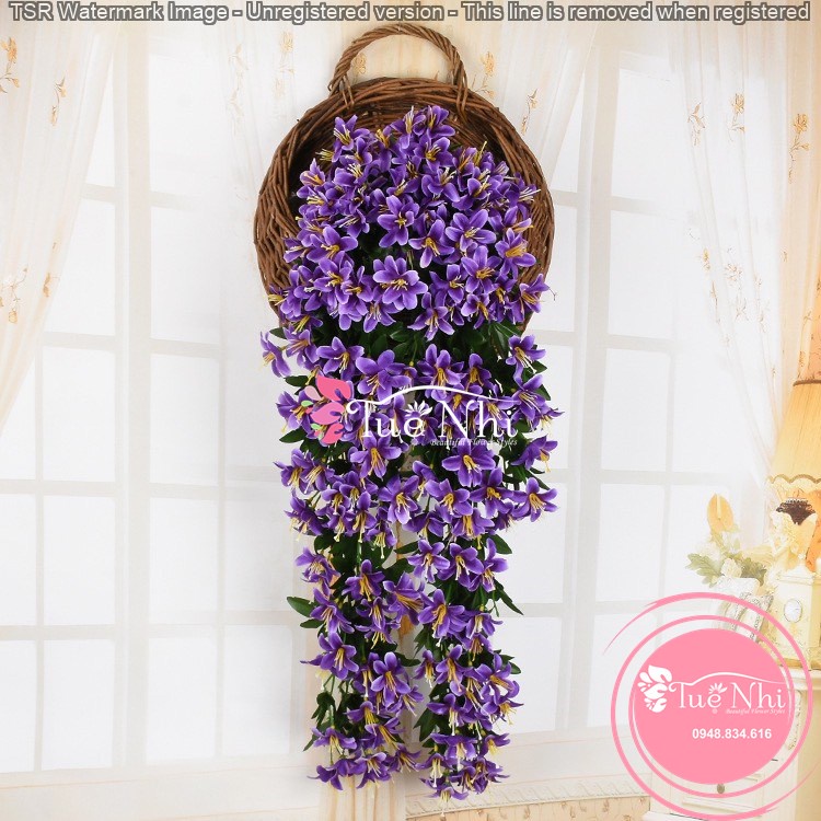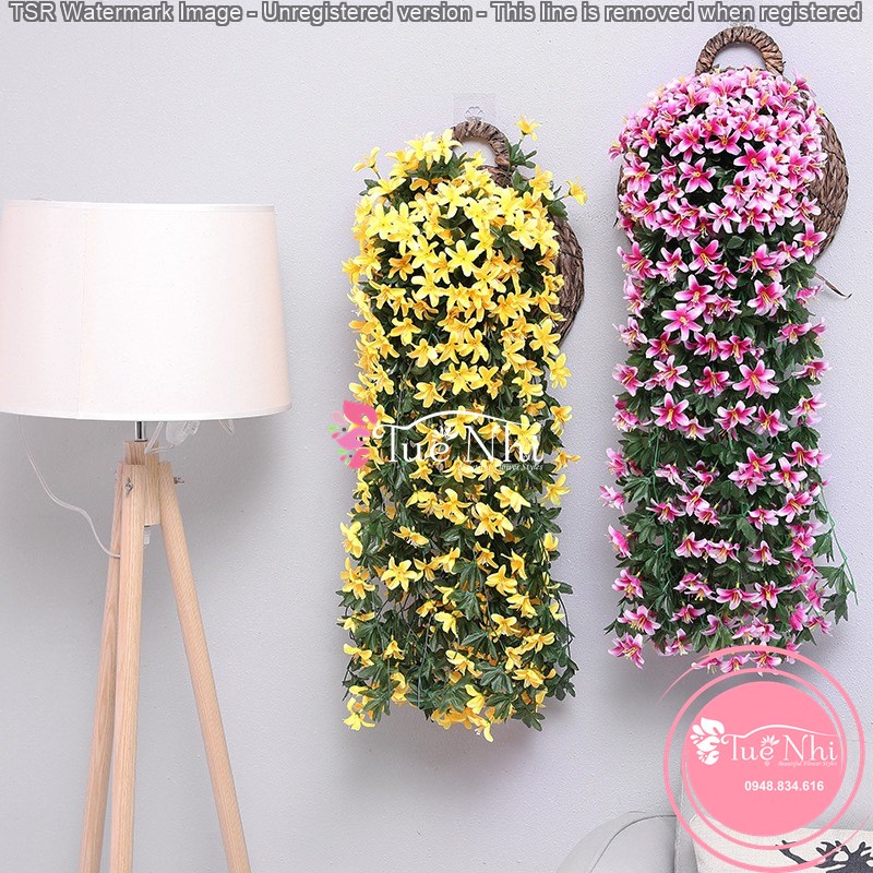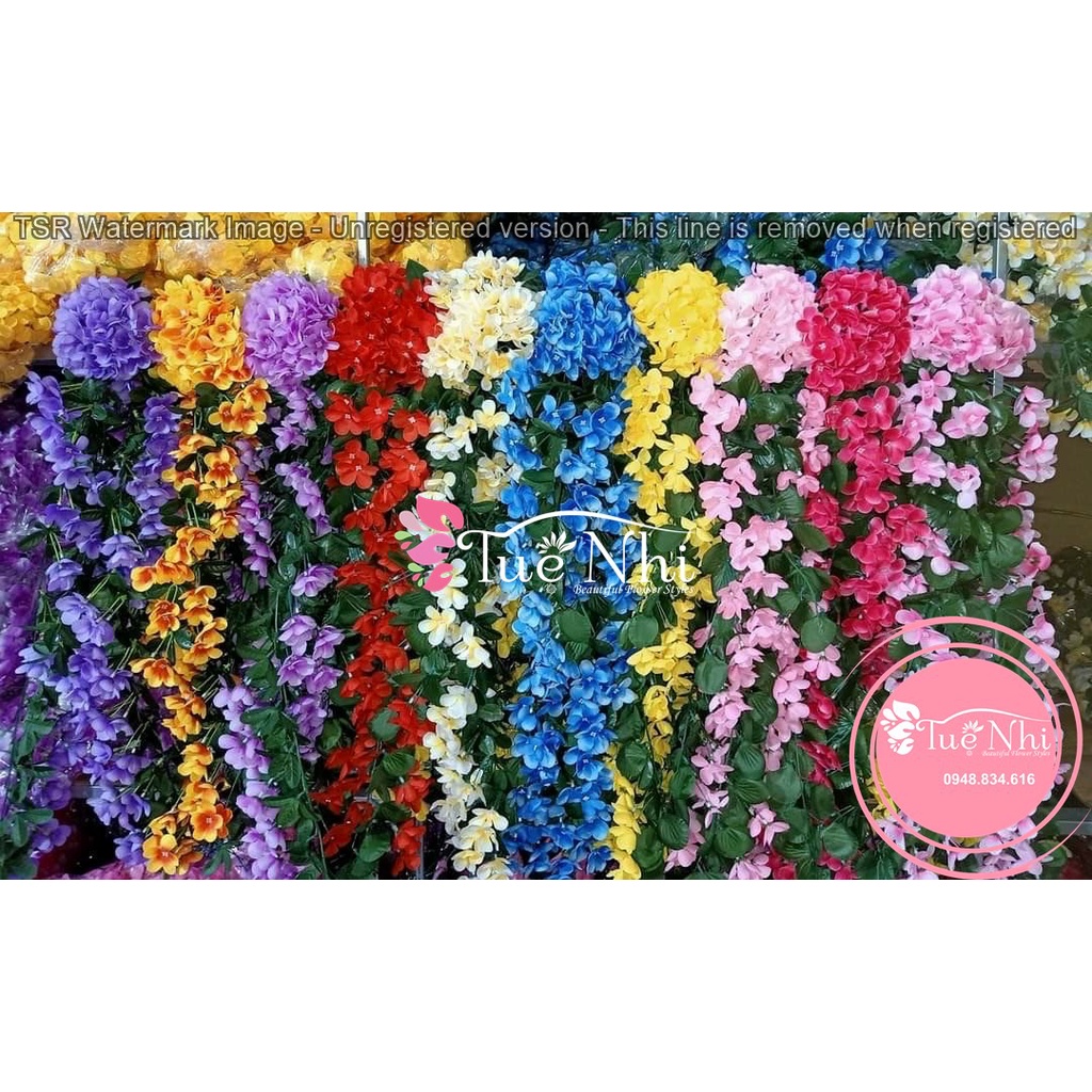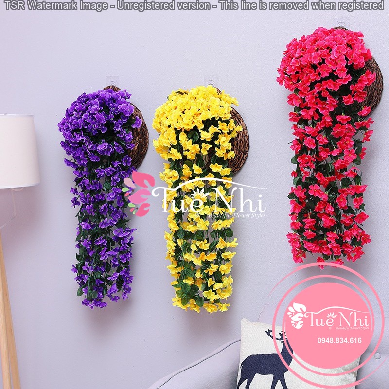 Chùm Đỗ Quyên Treo tường dài khoảng >60cm. Chất liệu hoa vải lụa cao cấp. Màu sắc đa dạng, xinh tươi, dễ treo, dễ trang trí.- Giá trên không bao gồm giỏ đan mây, giỏ nhựa , giỏ cói... . Chỉ riêng chùm hoa Đỗ Quyên.