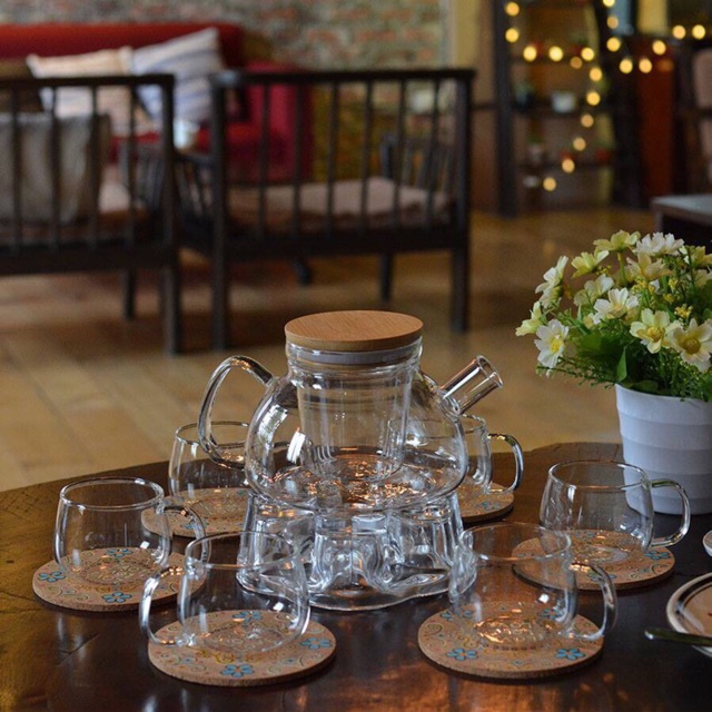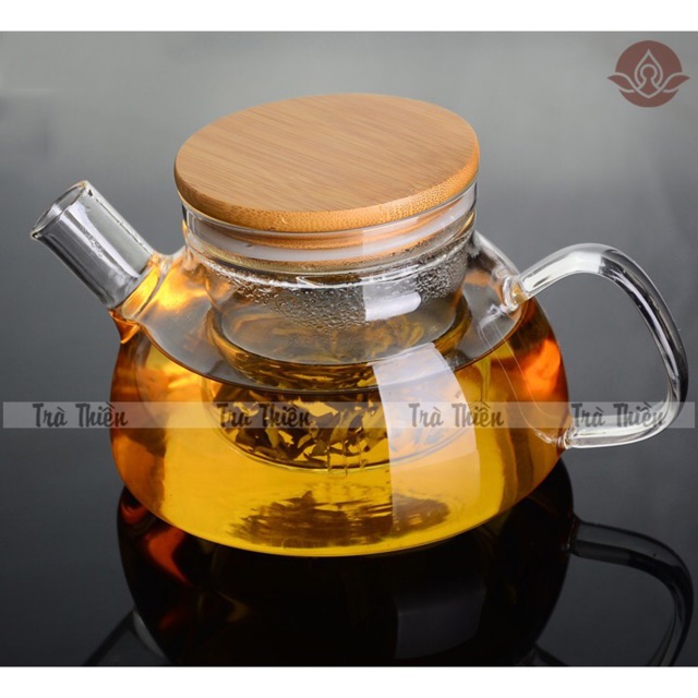 Ấm thuỷ tinh nắp tre chịu nhiệt tốt, ấm đi kèm lõi lọc trà rất tiện để pha các loại trà hoa, trà lá...Dung tích ấm 800ml tiện sử dụng.